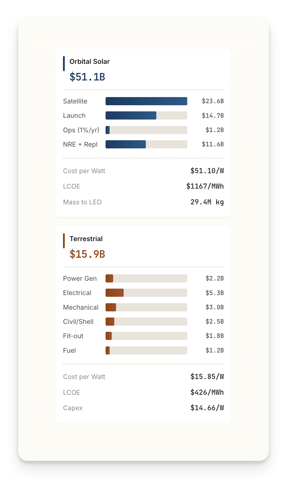 Economics of Orbital vs Terrestrial Data Centers