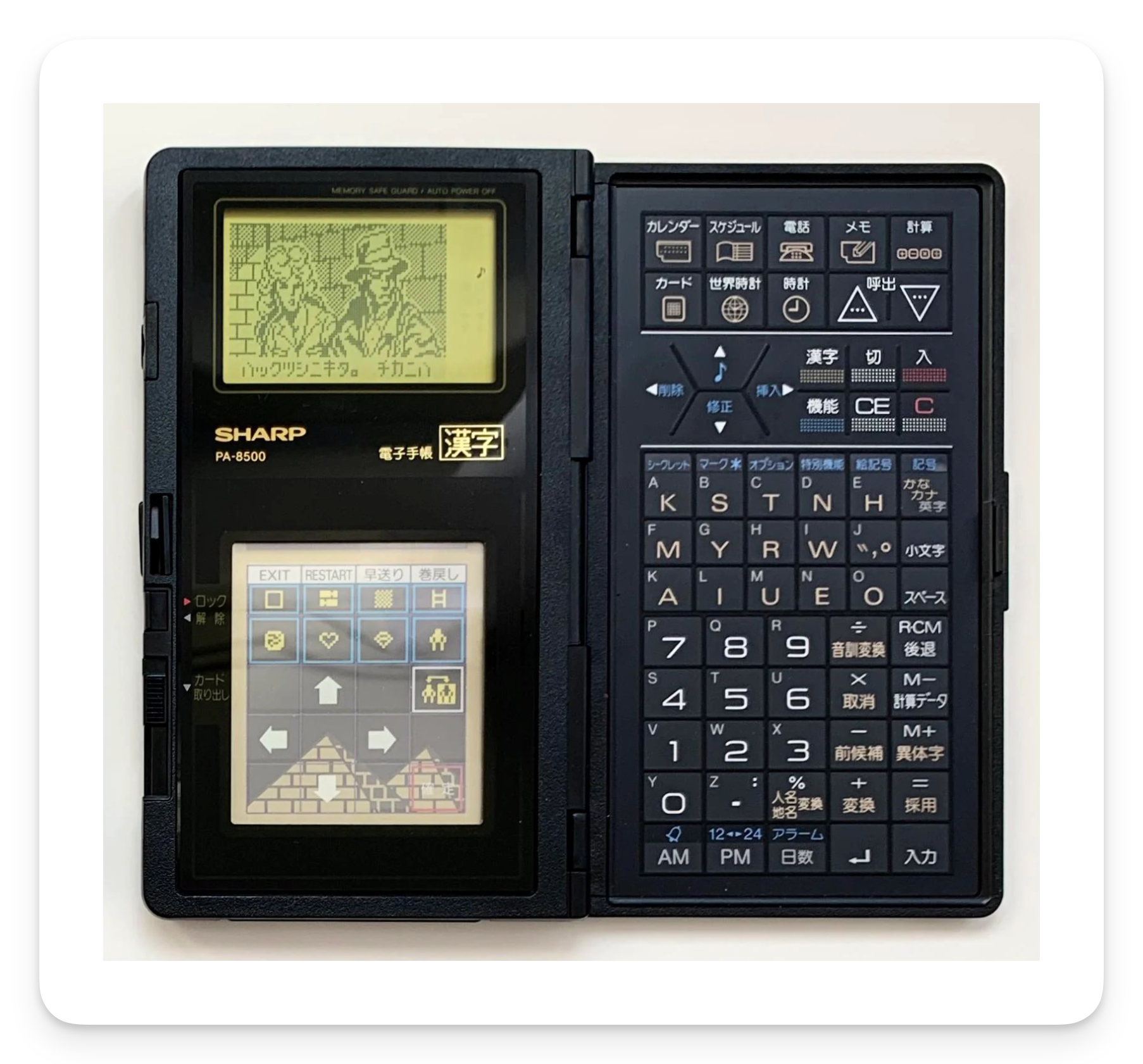 During my research into vintage Japanese drawing software, I came across some devices that had built in sketch or handwritten memo functions. I bought a couple of them to see if they did anything cool or interesting. These sorts of devices are pre-internet, so there’s not much about them online, and they can’t be emulated, so the only way to find out what they do is to get first hand experience by reading the manual or, better, using one yourself. It’s difficult to find these devices in working condition, as most of them have screen polarisers that have gone bad over time, but if you’re lucky you can find one.