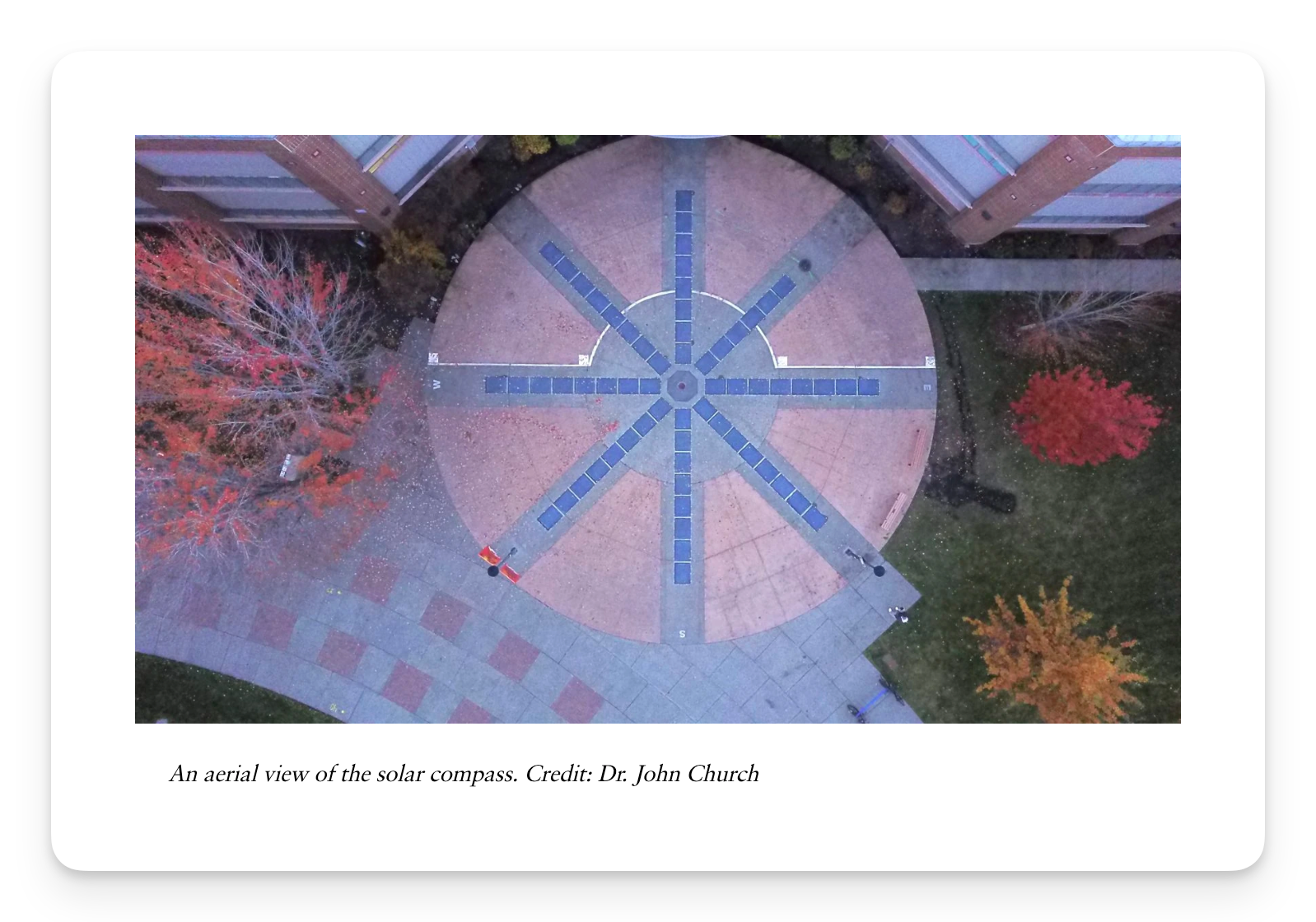 If the university’s solar array had been installed on a roof or mounted above ground in a corner of a soccer field, that probably would have been the end of the story. Instead, TRU didn’t follow trends — it set one: It became the first place in Canada to embed solar panels into the ground. By 2017, a 12-meter walkway with 16 solar modules near the campus daycare, together with a compass (sunburst) design of 62 modules in front of the arts and education building, were producing power. By its second summer of operation, the compass produced enough electricity to power an entire classroom of computers at TRU’s arts and education building for the day.